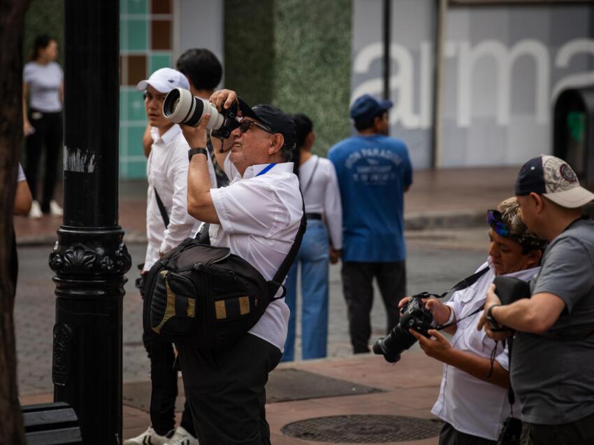 La avenida 9 de Octubre fue escenario este domingo de la FotoNaratón Iberoamericana 2026, una jornada que reunió a cerca de 100 fotógrafos en el corazón de la ciudad. Durante varias horas, el centro histórico, comercial y turístico de Guayaquil se transformó en un gran estudio al aire libre, donde la arquitectura, las esculturas y la vida cotidiana fueron protagonistas.