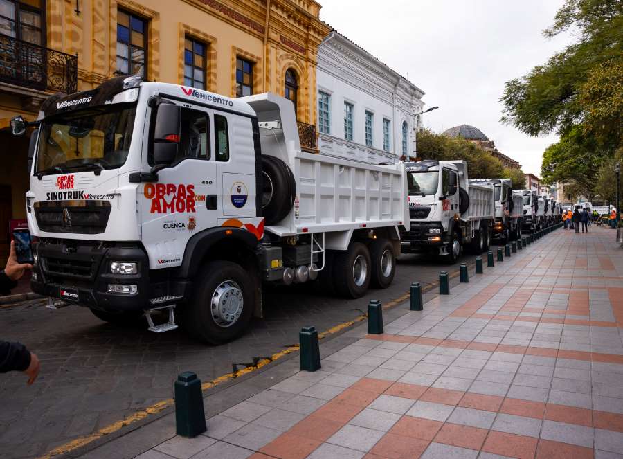 La Dirección de Obras Públicas de la municipalidad fortalece su flota vehicular después de ocho años, con la adquisición de 16 nuevas volquetas, para optimizar el trabajo en las vías del área urbana y rural. La maquinaria fue entregada durante el acto cumplido en el hemiciclo del Parque Calderón, por parte del alcalde de Cuenca, Cristian Zamora y Carlos Rivera Bautista, Gerente General del Banco de Desarrollo del Ecuador. B.P.