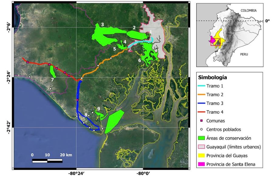 El estudio fue realizado en las carreteras Vía a la Costa E40 y Vía Colectora Posorja E489, entre los centros poblados de Guayaquil, General Villamil, Posorja, El Morro (en la provincia del Guayas), y Chanduy (en la provincia de Santa Elena), en el Occidente de Ecuador.