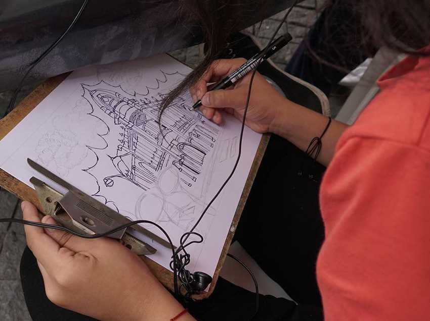 La estudiante Ana Cervantes, del colegio fiscal técnico Provincia de Bolívar, se inspiró en la iglesia Catedral Metropolitana de Guayaquil. “Me parece increíble, que nos den esta oportunidad para expresarnos a través del dibujo”.