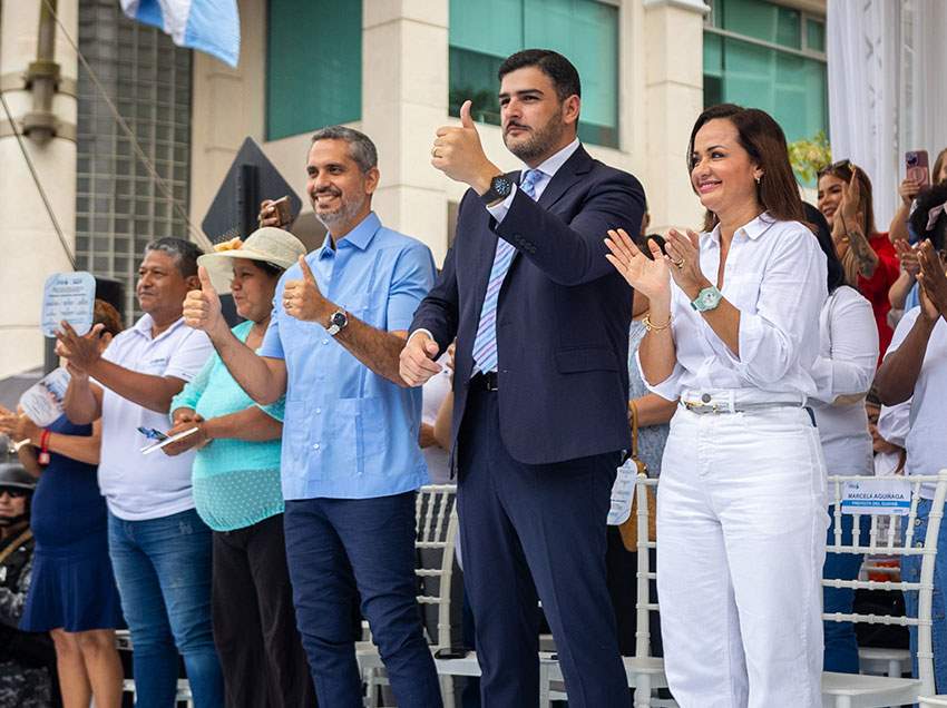 El personero municipal, junto con el concejal Raúl Chávez, arribó cerca de las 16:40 hasta la calle Aguirre y de allí se dirigió a la tarima de autoridades, instalada en los bajos de la Prefectura, en Malecón e Illinwgorth.