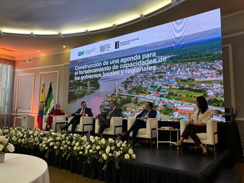Esa exposición se realizó durante la presentación del Reporte de Economía y Desarrollo (RED) 2025 – CAF, con el tema: “Soluciones cercanas: el rol de los gobiernos locales y regionales en América Latina y el Caribe”, organizado por la CAF – Banco de Desarrollo de América Latina y el Caribe, con la participación de empresarios, alcaldes y prefectos del país, encuentro realizado en el club La Unión En Quito.