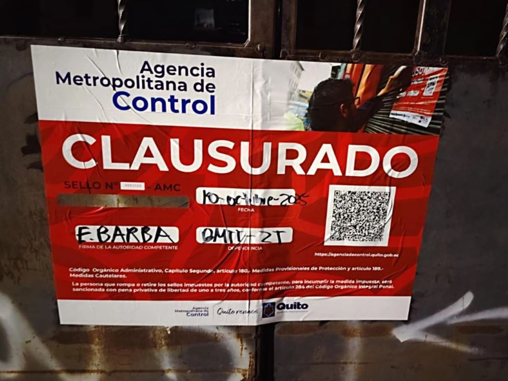 El supervisor metropolitano de control, Gustavo Chiriboga, explicó que, “además de la clausura del lugar, el responsable podría enfrentar una multa correspondiente a establecimientos de categoría 3, que va de 9 a 15 remuneraciones básicas unificadas, es decir, entre USD 4.230 y 7 050, por operar sin los permisos para faenamiento”.