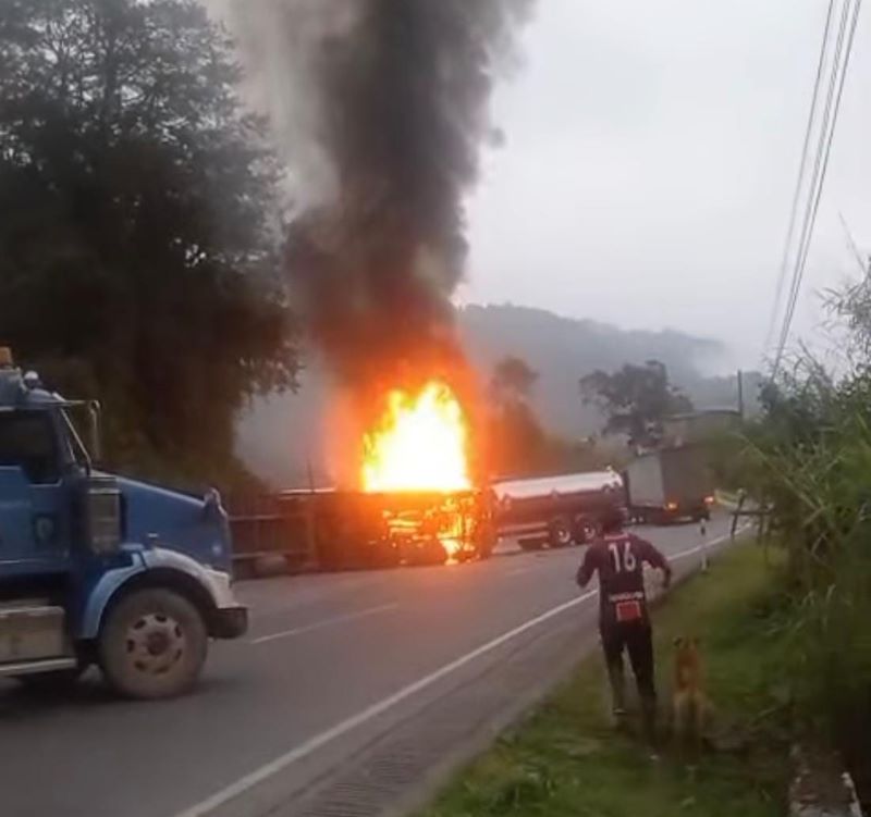 Este lunes 21 de julio, a las 18:11, se registró un choque de dos vehículos pesados, en la vía Alóag – Santo Domingo, a la altura del kilómetro 38. Como consecuencia del siniestro, uno de los vehículos se incendió.