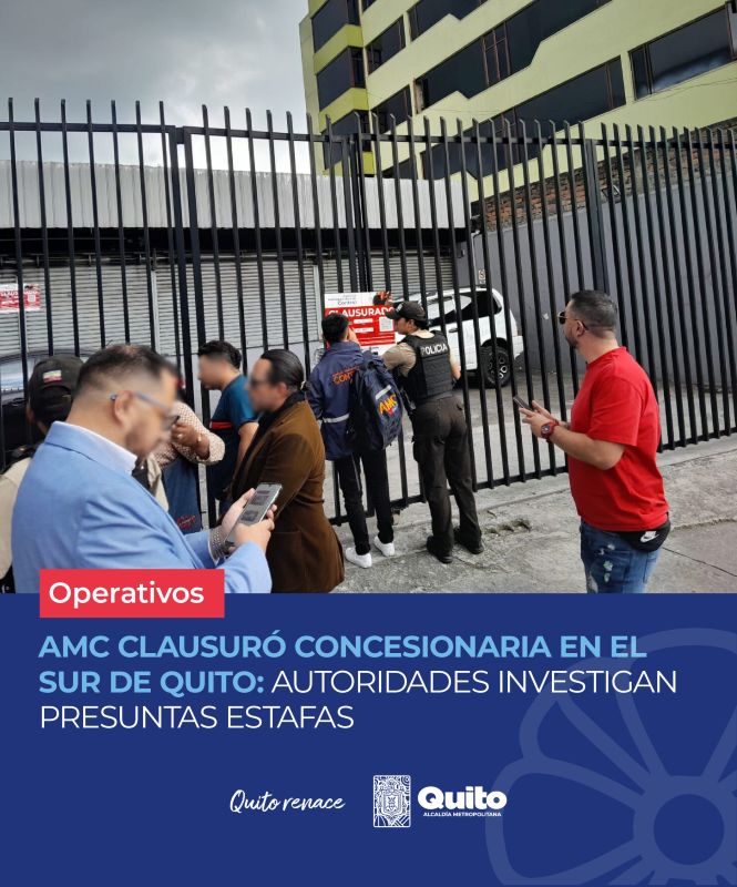 En el barrio La Magdalena, al sur de Quito, la Agencia Metropolitana de Control (AMC) clausuró una concesionaria de autos que funcionaba sin los permisos municipales, esta intervención se realizó tras una alerta de la Policía Nacional por una presunta estafa.