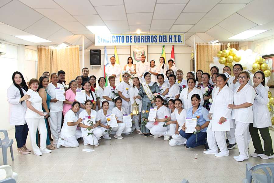 Vilma Poma, gerente hospitalaria, felicitó y destacó el trabajo del personal de enfermería del HTD, quienes durante la pandemia realizaron una labor extraordinaria e incluso exponiendo sus vidas para brindar atención a los miles de pacientes que necesitaron hospitalización por el COVID-19.