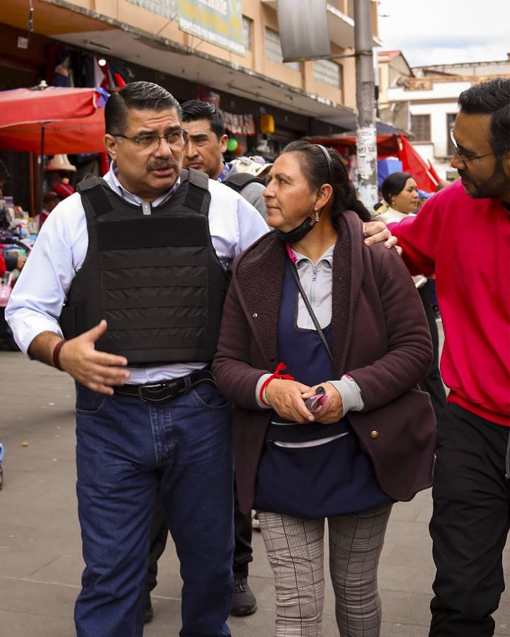 El candidato Jorge Escala recorrió el mercado 9 de Octubre de Cuenca, donde conversó con sus comerciantes. Anunció que, en caso de llegar a la Presidencia, cobrará los impuestos a los evasores y otorgará créditos para el emprendimiento.