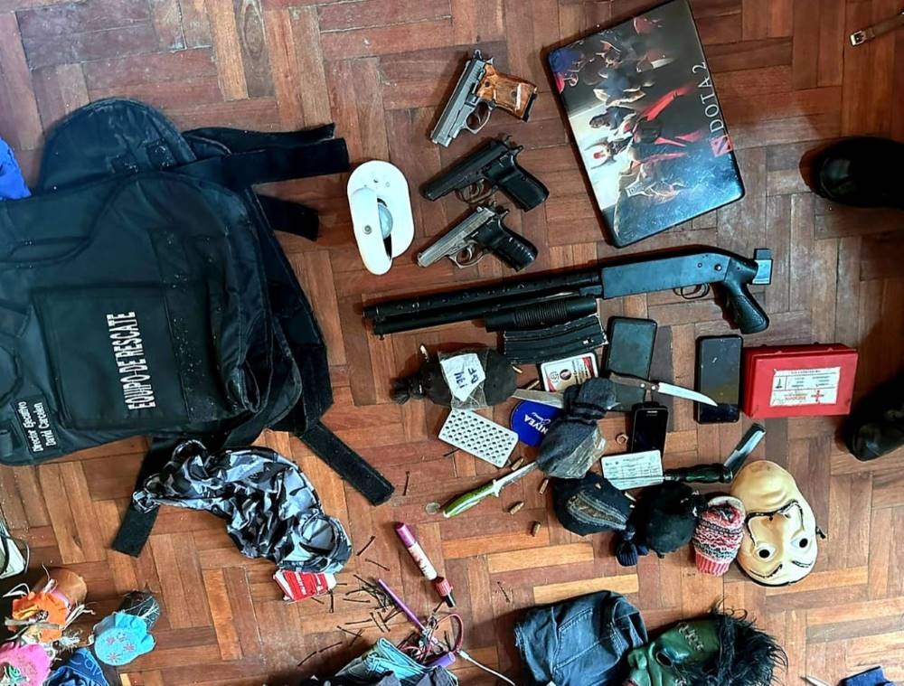 En el segundo piso del establecimiento, dentro de una habitación atribuida al director del lugar, se encontraron tres pistolas, una escopeta, aproximadamente 300 municiones, cuatro armas cortopunzantes y un chaleco antibalas . Ocho celulares sin justificación de procedencia, lo que la Policía presume que estarían vinculados a actividades ilícitas. El armamento se encuentra en cadena de custodia en la Policía Judicial y servirá para el levantamiento del expediente en la Fiscalía.