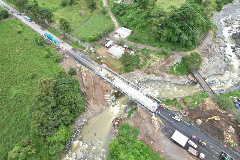 Desde la fuerte crecida del río que socavó el estribo derecho de la carretera ocasionando el colapso del tablero del puente y como consecuencia el cierre de la circulación vehicular, el presidente Daniel Noboa dispuso la colocación de un puente provisional sobre el río Lelia, debido a la importancia de la vía para el desarrollo comercial, productivo y turístico del país.