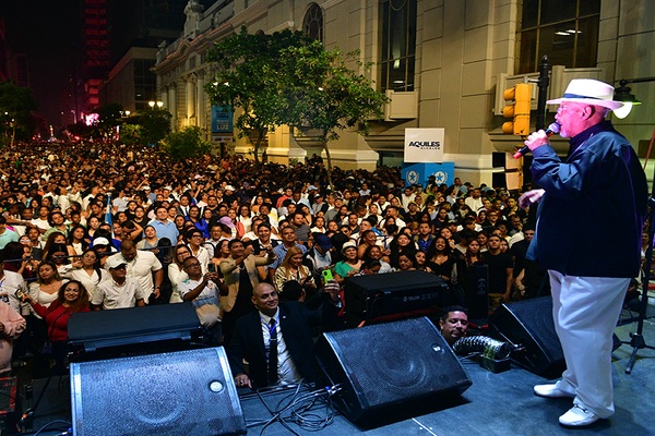 Más de 20.000 personas se congregaron en la intersección de las avenidas 9 de Octubre y Malecón Simón Bolívar para conmemorar los 490 años de fundación de la ciudad con un concierto masivo que unió generaciones al ritmo de la salsa.
