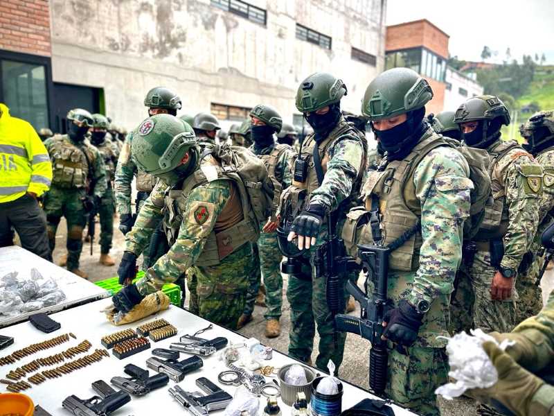Este lunes 15 de enero de 2024, las Fuerzas Armadas y la Policía Nacional continuaron con la intervención en los Centro de Rehabilitación Social. Durante las operaciones militares simultáneas se decomisó: armas, municiones, explosivos, sustancias sujetas a fiscalización y dispositivos electrónicos, de acuerdo al siguiente detalle: