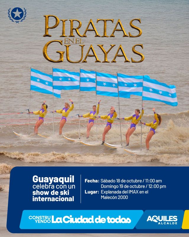 La Alcaldía de Guayaquil, a través de la Dirección de Turismo, presenta el espectáculo internacional ‘Piratas en el Guayas’, un montaje inédito que combina esquí acuático, teatro musical, música original y deporte extremo para toda la familia.