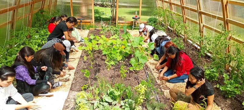 El espacio no solo es una obra de arte, sino también un componente vital para el bienestar de las plantas. Aquí, los estudiantes cosechan y plantan mientras aprenden otros valores esenciales como la paciencia y el trabajo en equipo.