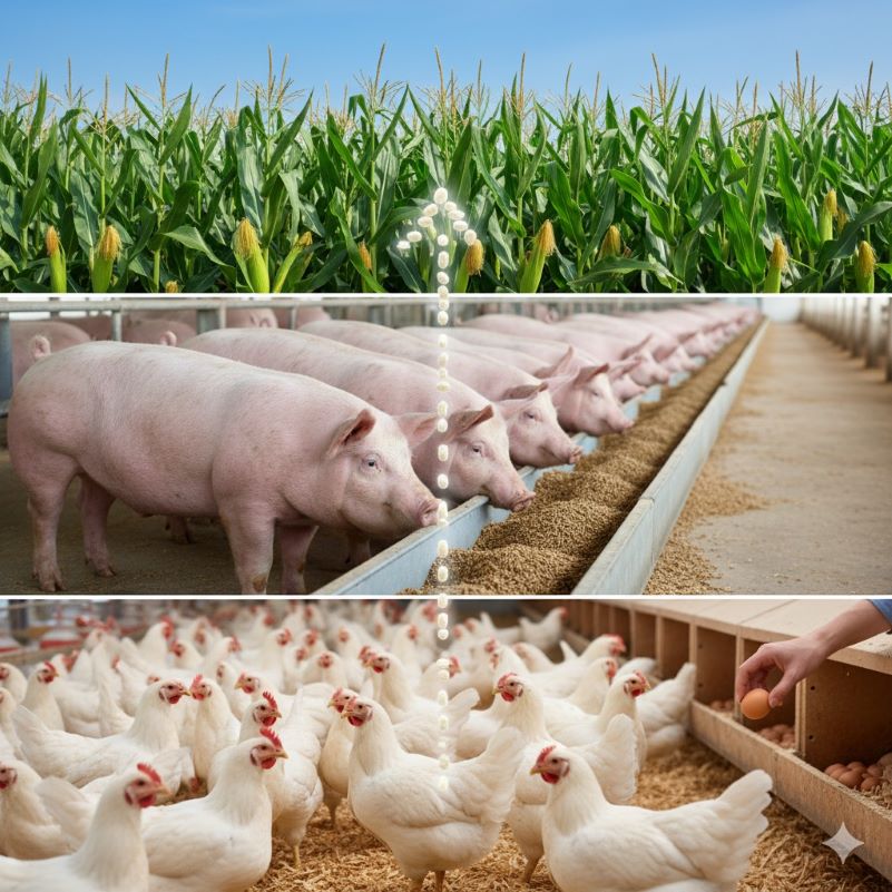 El 75% del costo total de producción de pollo, huevos y cerdo corresponde al alimento balanceado, y dentro del costo del alimento, el maíz representa del 55% al 60%.