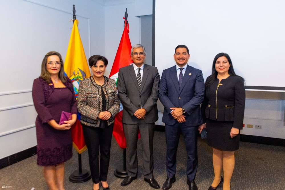 El Embajador de Perú en Ecuador, Eduardo Zeballos Valle, también se refirió a la importancia de la relación bilateral entre los dos países y felicitó la gestión de la Cámara mediante la entrega de una placa por su gestión de impulso de los vínculos de negocios y amistad.