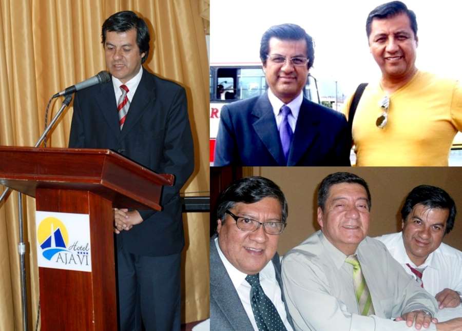 Izquierda, Jaime Alberto Salazar Paredes, en 2001, como presidente del Colegio de Periodistas de Imbabura. Derecha superior, en 2009, con su hermano Antonio recientemente fallecido. Derecha inferior, en 2014, con sus hermanos Hernán y Fabián Salazar Paredes, personajes de la radio de la provincia de Imbabura y el Ecuador.