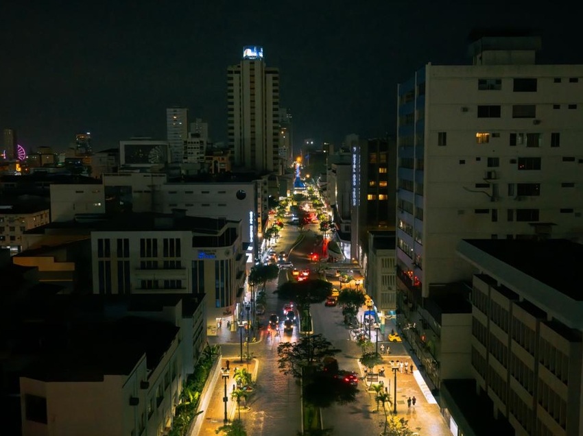 La avenida 9 de Octubre, eje histórico y comercial de Guayaquil, avanza en su transformación gracias a los trabajos de repotenciación del sistema de iluminación con tecnología LED, lo que mejorará la visibilidad y seguridad para peatones y conductores que transitan por este icónico bulevar.