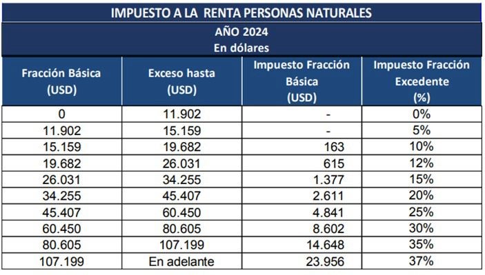 Es importante señalar que las leyes fiscales y las tablas de impuestos pueden cambiar, por lo que es crucial verificar la información más reciente proporcionada por el Servicio de Rentas Internas (SRI) o consultar a un profesional de impuestos para obtener asesoramiento actualizado y específico para cada situación. (I)