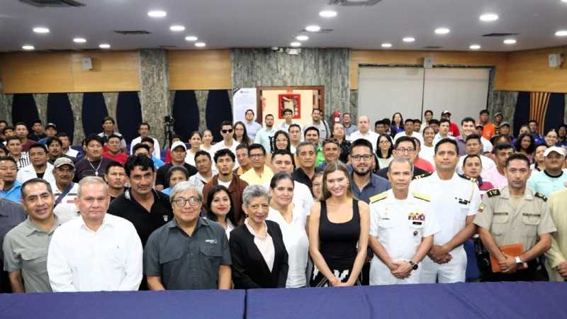 El acto se llevó a cabo en el auditorio del Campus Centenario de la Universidad Politécnica Salesiana de Guayaquil, con la presencia de alrededor de 100 personas entre representantes de diferentes instituciones públicas, academia y gremios del sector pesquero artesanal.