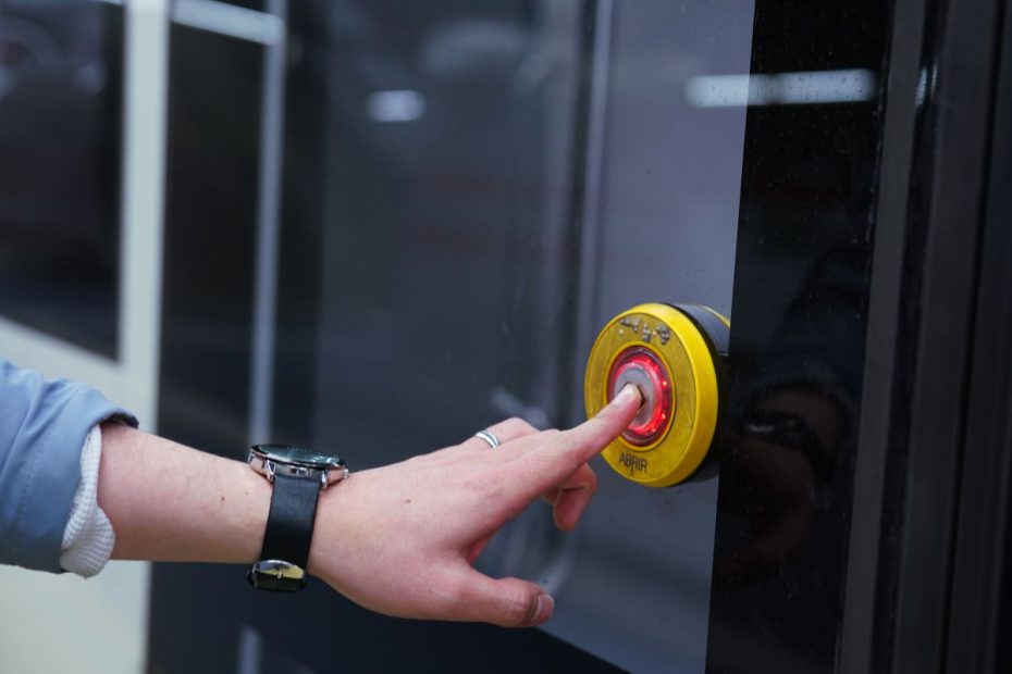 Mientras el tren está en movimiento, el botón no está habilitado y este no abre ninguna puerta, así se presione por accidente el botón.