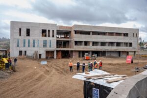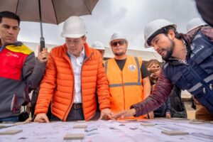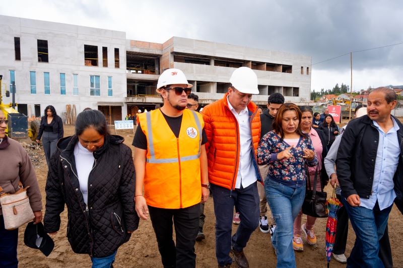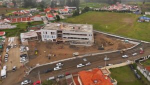 El alcalde de Cuenca, Cristian Zamora junto al equipo de la Unidad Ejecutora de Proyectos, contratistas y medios de comunicación recorrió la edificación de tres plantas del primer Hospital de la Ruralidad, ubicado en el sector de Guncay, parroquia El Valle que registra un avance del 45%.
