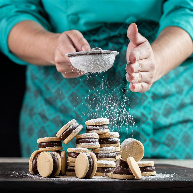 Los alfajores, con su textura suave y ese sabor que evoca celebraciones familiares, también forman parte de muchas mesas navideñas en Ecuador. Esta versión sin azúcar añadida está endulzada con Splenda® y puede llevar un toque costeño con coco rallado natural, manteniendo el equilibrio sin perder el alma del postre.