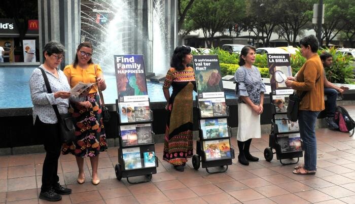 En Guayaquil se han instalado 45 sitios con 3 exhibidores portátiles cada uno. Allí se ofrecen de forma gratuita publicaciones en tres idiomas: español, inglés y portugués. Estas publicaciones contienen información sobre la familia, problemas palpitantes de la juventud, consejos prácticos para la vida y respuestas a preguntas sobre la Biblia.
