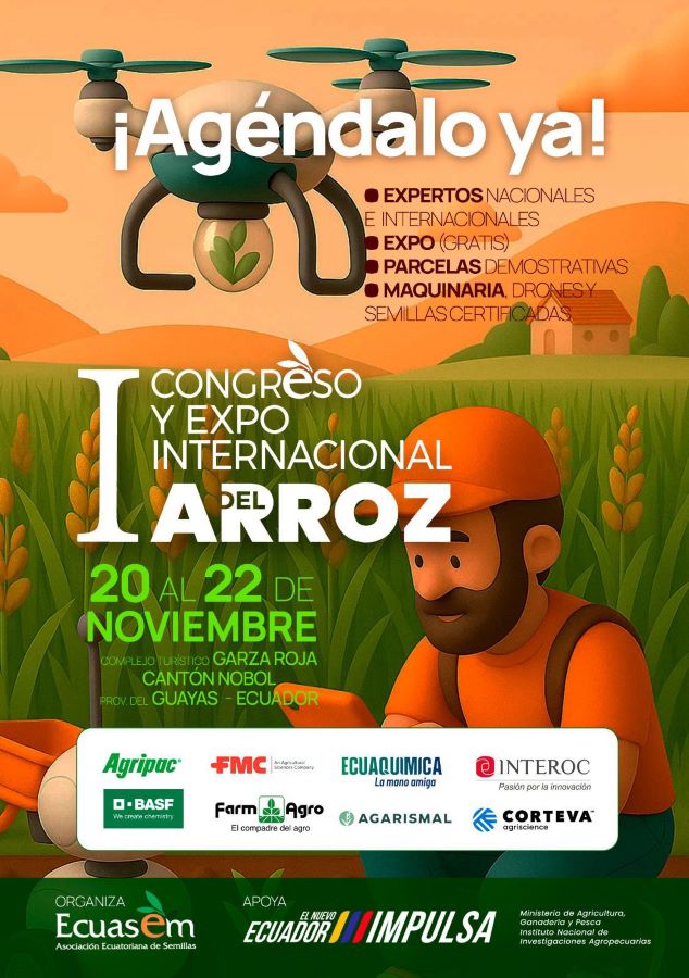 El Ministerio de Agricultura y Ganadería (MAGP) informó que apoyó formalmente el evento el pasado 19 de septiembre de 2025, y extendió una invitación a todos los agricultores a participar en el “Primer Congreso y Expo Internacional del Arroz”, que se realizará los días 20, 21 y 22 de noviembre de 2025, en Guayaquil.