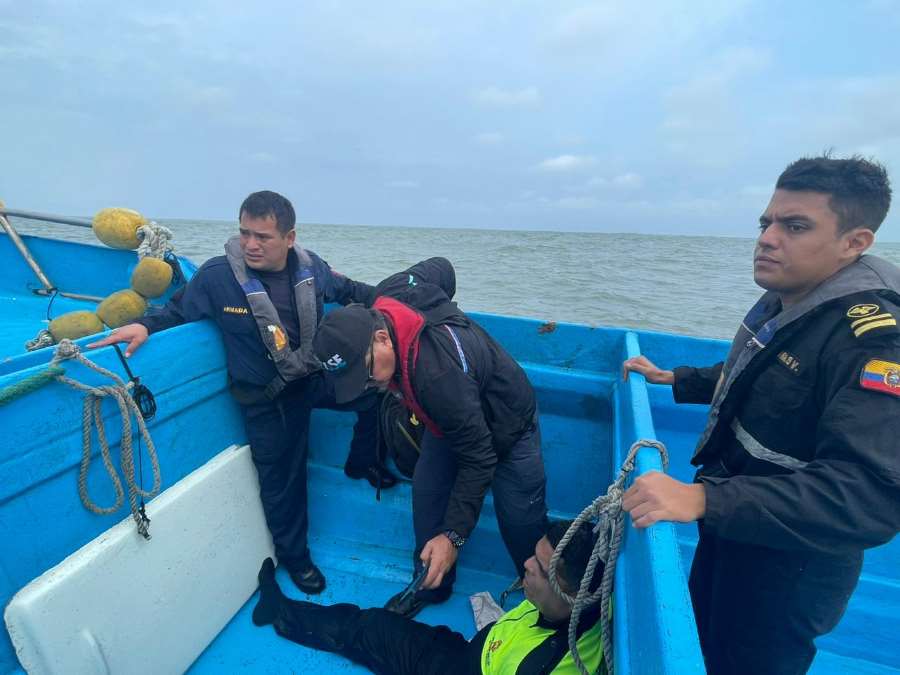 Los rescatados se encontraban a la deriva con heridas leves, por lo que al arribar al muelle municipal de la parroquia Posorja, el equipo de ‘Enfermeros de combate’, de la Armada desplegado en ese sitio les brindó los primeros auxilios, luego de lo cual las autoridades competentes realizaron los trámites legales correspondientes.