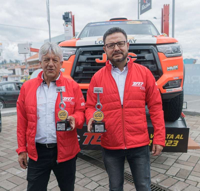 John Zabaleta y Adrián Castillo, campeones de la Vuelta al Ecuador 2023, con la camioneta JAC T8.