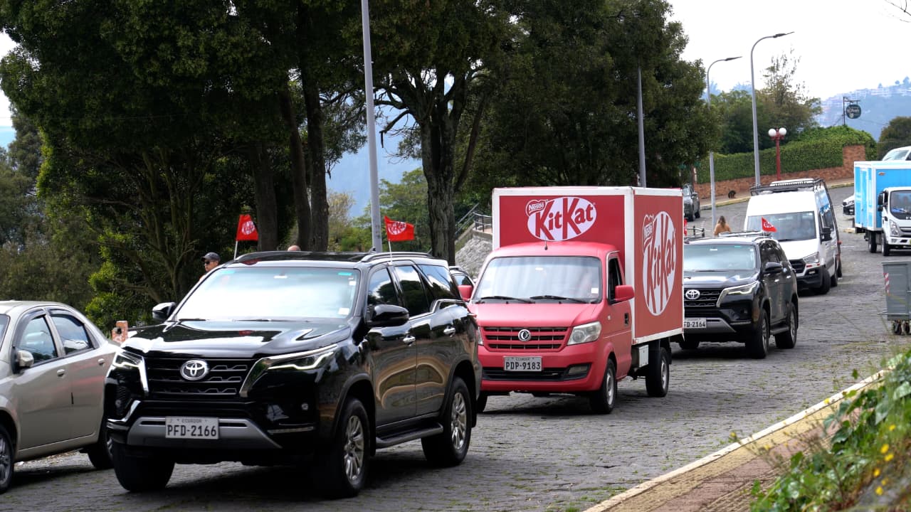 Quito, abril de 2026.- Un camión de transporte de KitKat® fue visto recorriendo las calles del norte de Quito, acompañado de un convoy de seguridad, en una escena que llamó la atención de los transeúntes. El hecho, registrado en video y compartido con medios, generó curiosidad por su inusual despliegue en vías de la capital.